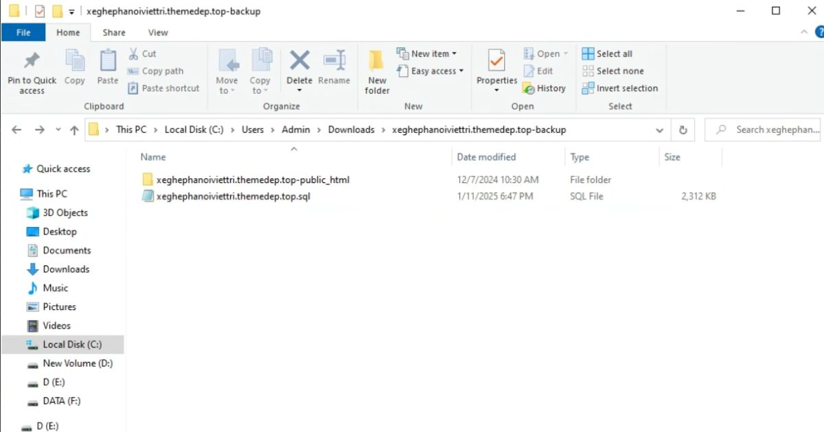 - File cơ sở dữ liệu .sql: Chứa thông tin cần thiết để khôi phục hoặc kết nối dữ liệu của website.